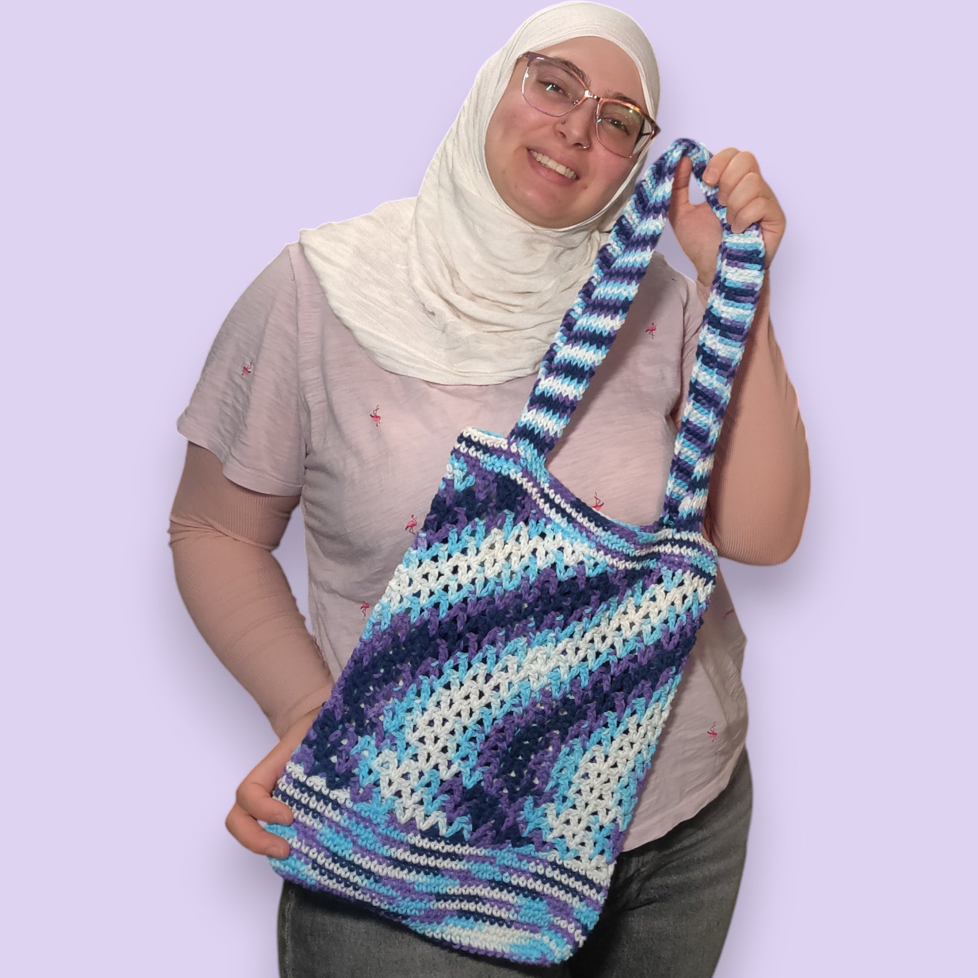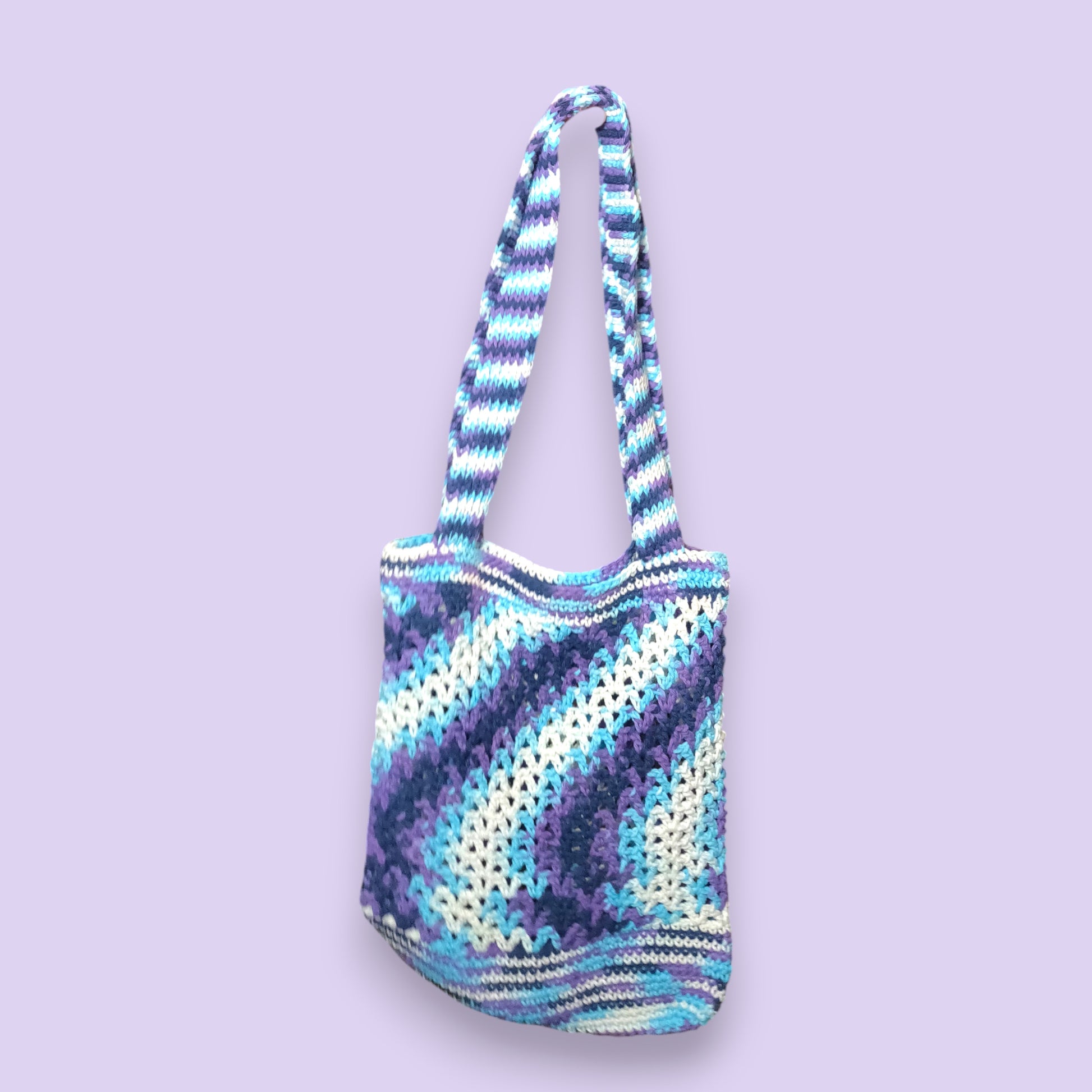 I designed this crocheted mesh tote bag with a solid sturdy bottom and thick tunisian crochet faux knit handles. Perfect as a market bag or a working at the coffee shop kinda bag.