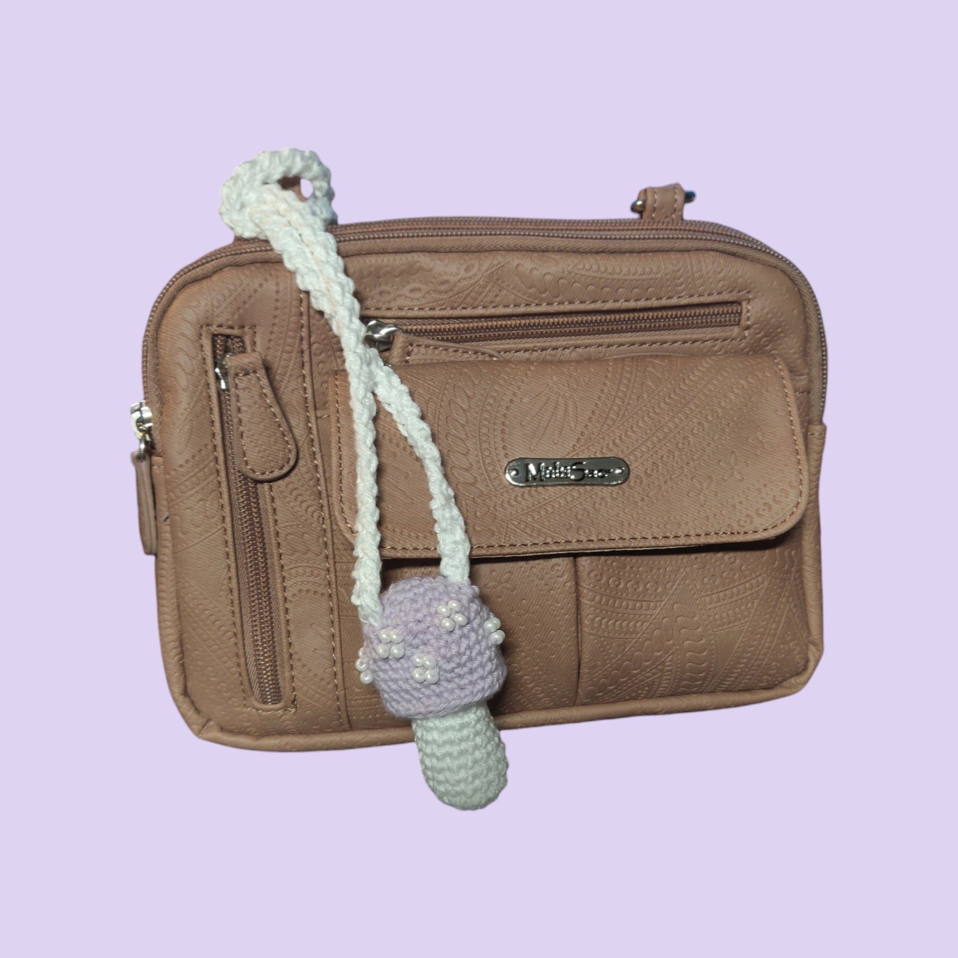 Cute crocheted mushroom belt loop or bag charm perfect of chapstick or any other goodies
